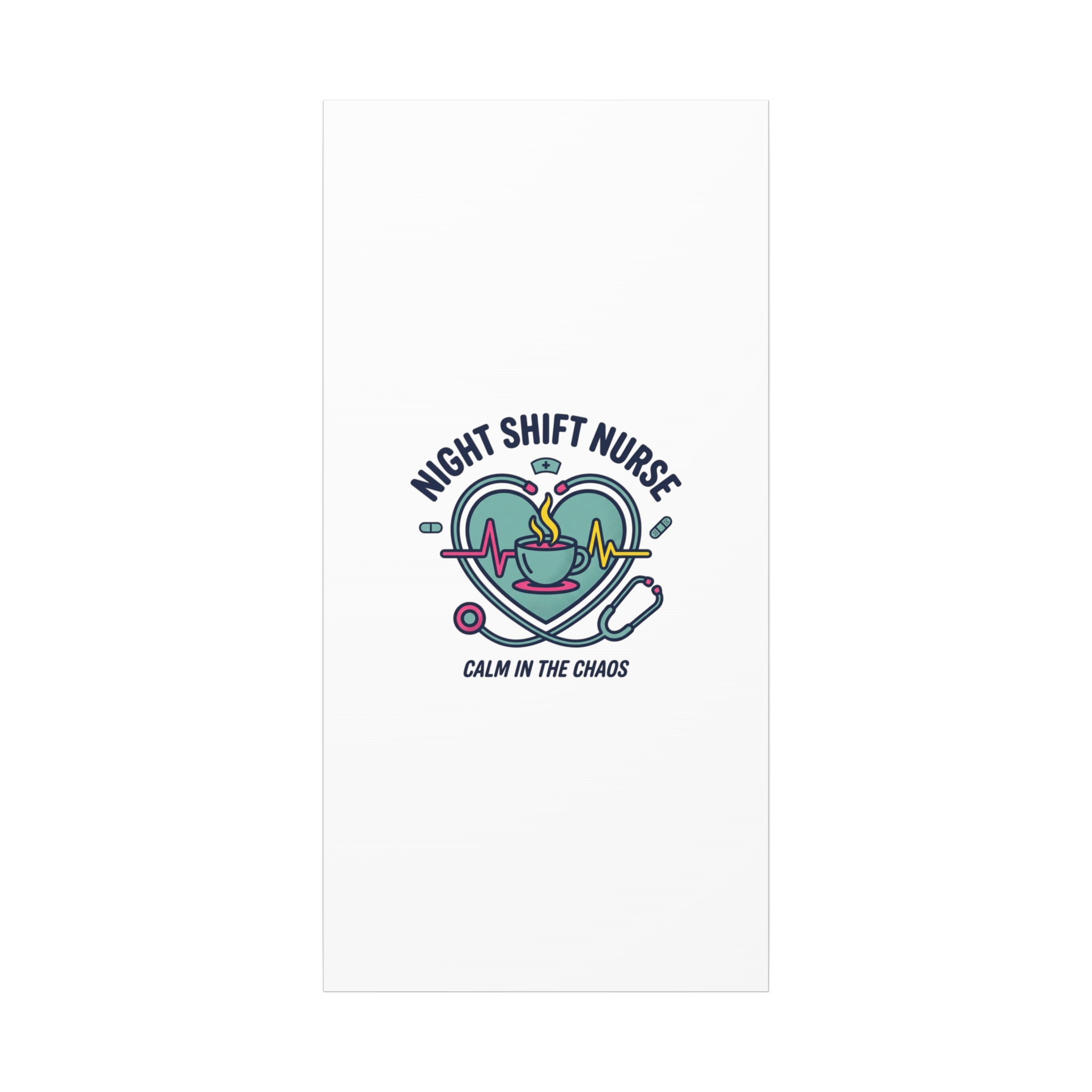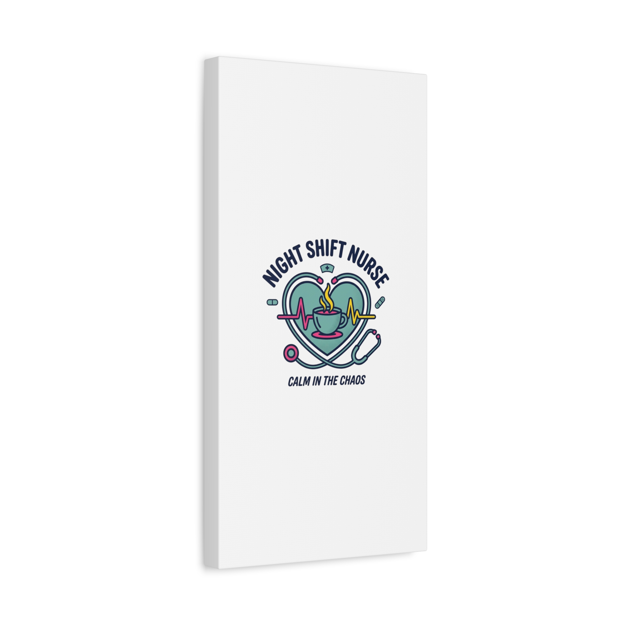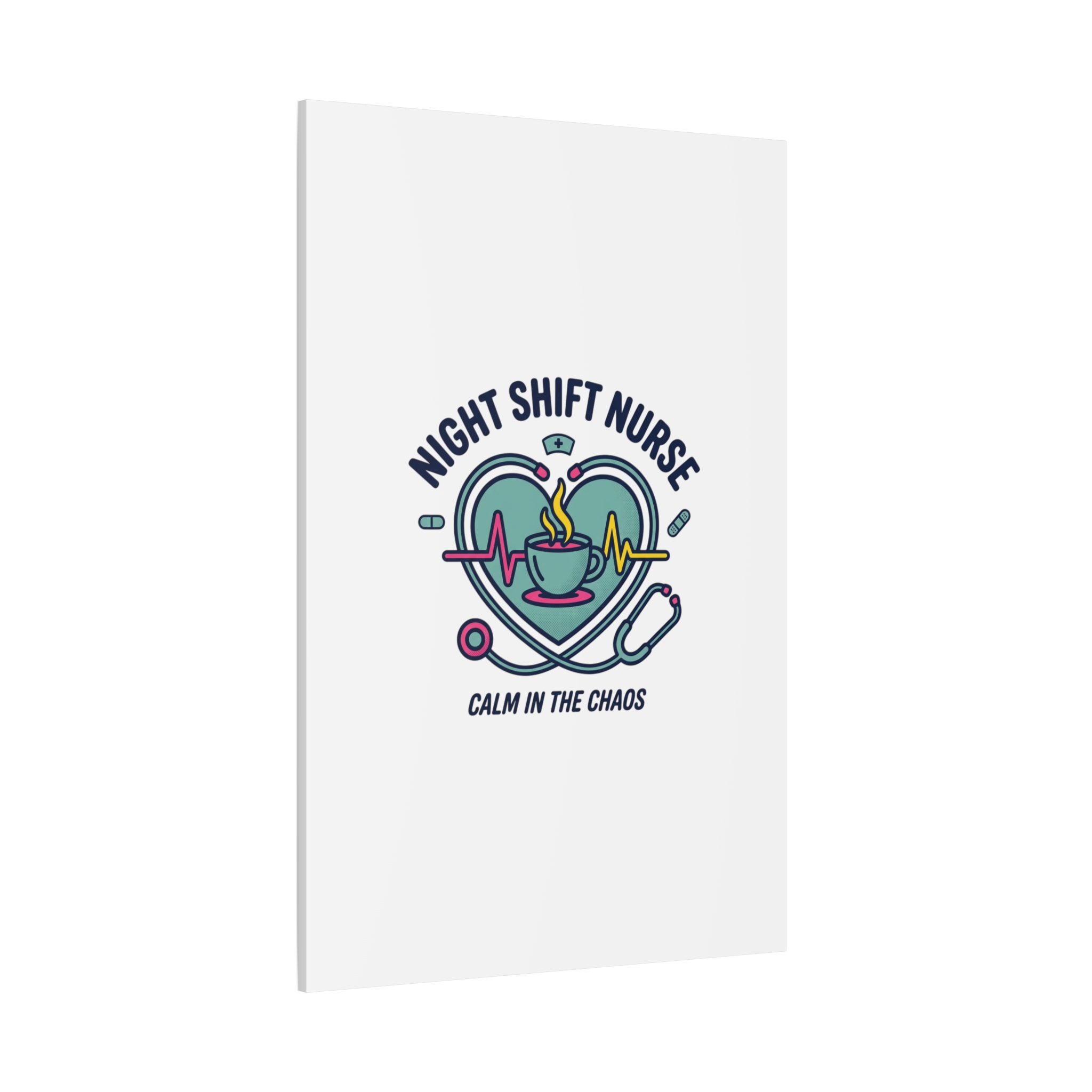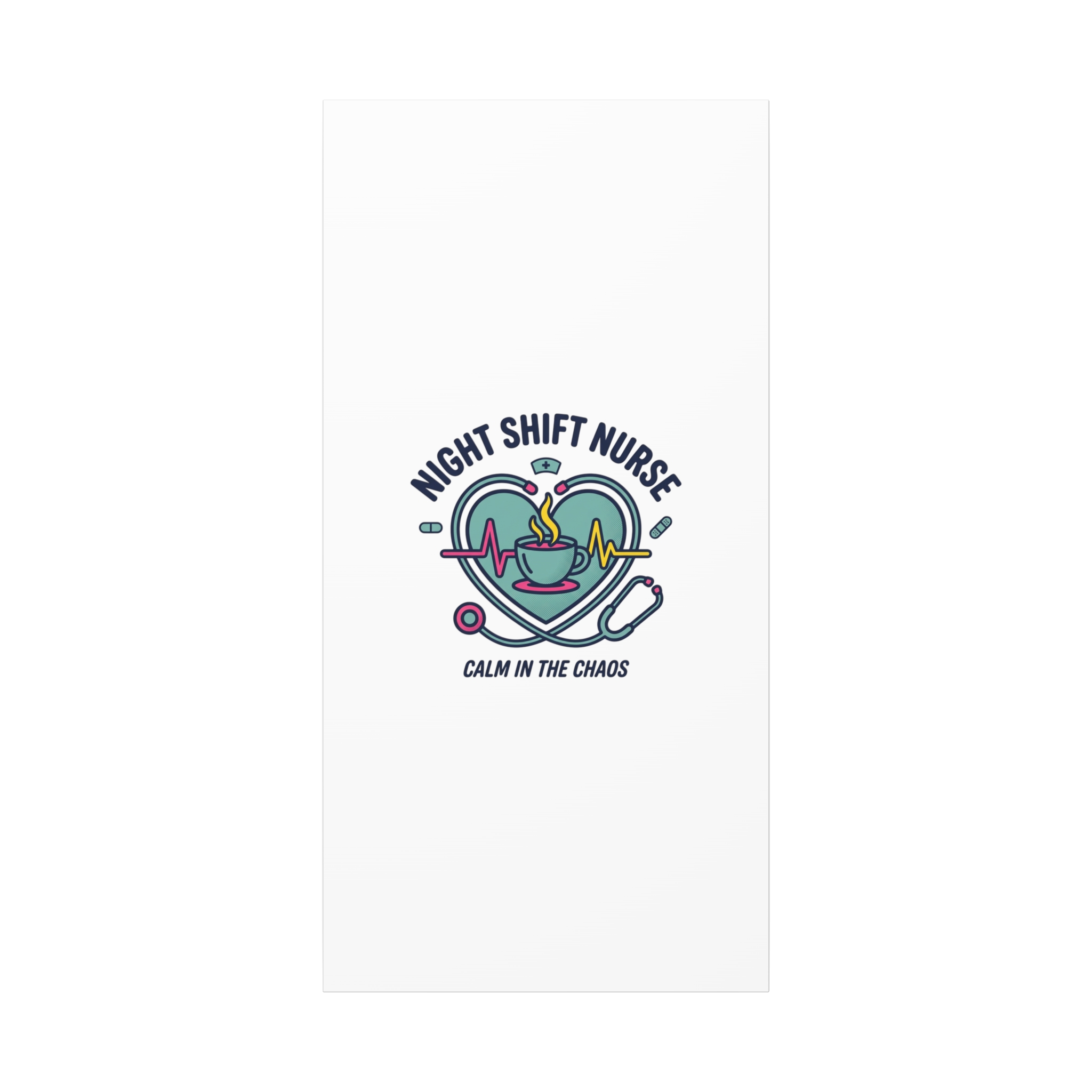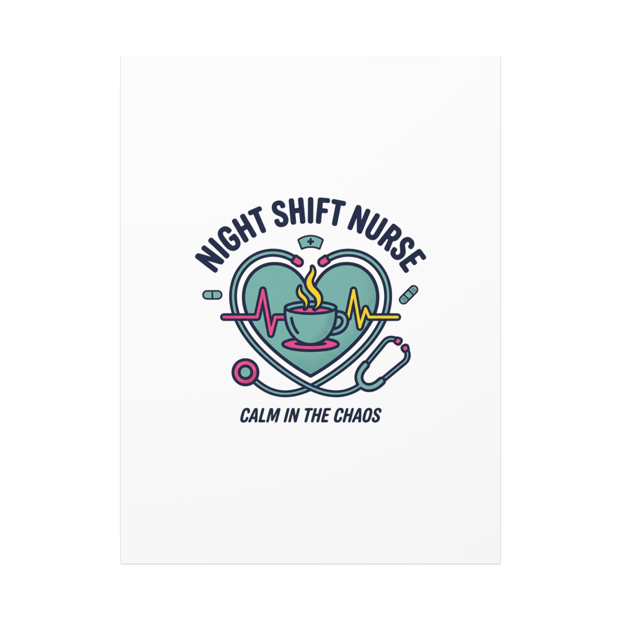 Night shift nurse canvas art blending warm nurse pride with a calm, coffee-fueled motif. The design features a stethoscope forming a heart, an ECG line, a steaming coffee cup, and small pill accents in a soft, friendly palette—matching the ‘Nurse Aesthetic’ vocabulary of resilience, community, and coffee humor. Its approachable typography and soothing colors suit hospital break rooms, nursing stations, or home offices as an understated nod to late-night clinical work and camaraderie.